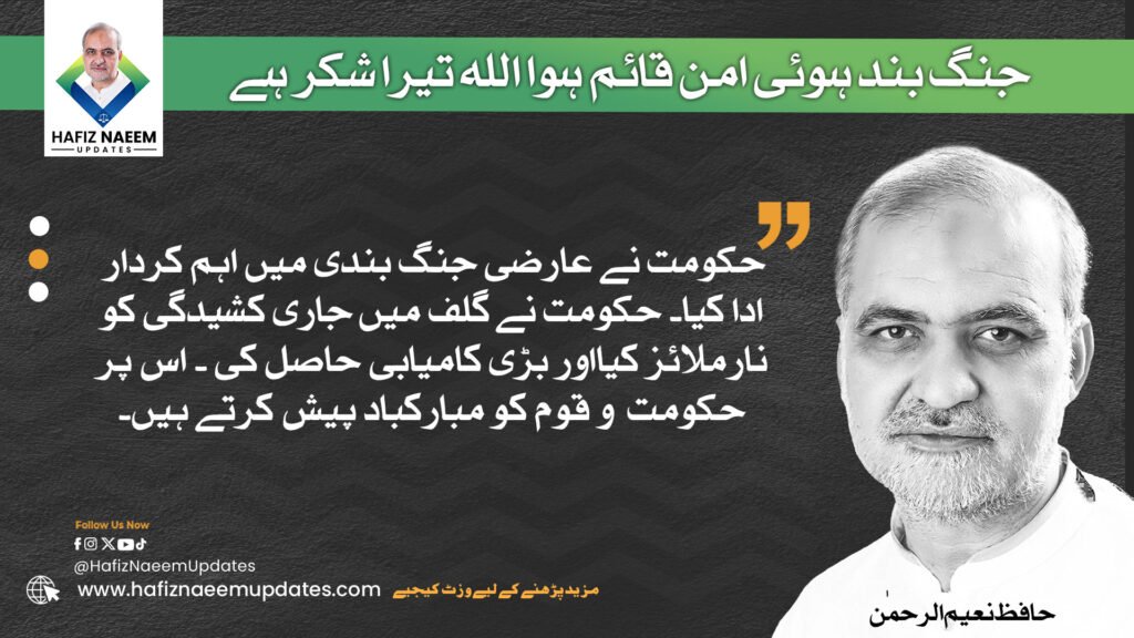 امریکہ ایران جنگ بندی پر امیر جماعت اسلامی حافظ نعیم الرحمان کا اہم وڈیو بیان